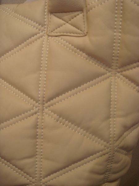 ・三角デザインのステッチがおしゃれなレザーバッグです。