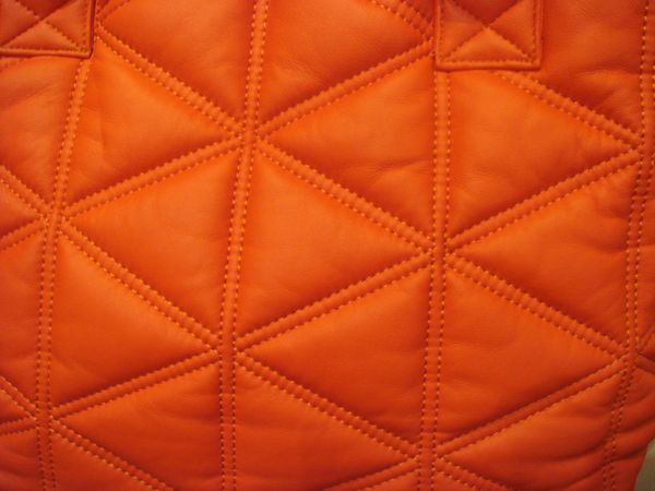 ・三角デザインのステッチがおしゃれなレザーバッグです。