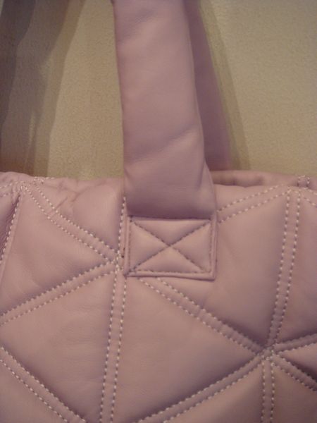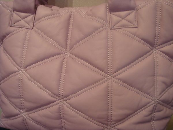 ・三角デザインのステッチがおしゃれなレザーバッグです。
